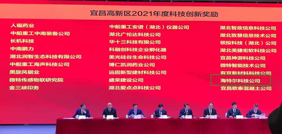2022年2月18日下午,宜昌高新区召开经济质量发展暨优化营商环境大会。海特尔(湖北)技术有限公司荣获宜昌高新区2021年度科技创新奖励与2021年度经济高质量发展(市场主体培育)奖励二项奖励!